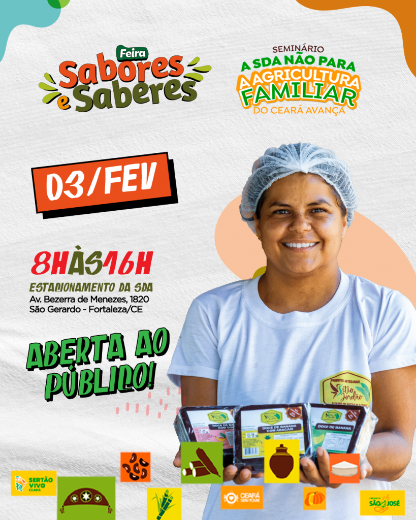 O Governo do Ceará, por meio da Secretaria do Desenvolvimento Agrário (SDA), realiza no próximo dia 3 de fevereiro, a partir das 8h, no auditório da SDA, o seminário “O trabalho não para. A agricultura familiar do Ceará avança”. O evento contará com a presença do governador do Ceará, Elmano de Freitas, e do secretário do Desenvolvimento Agrário, Moisés Braz.