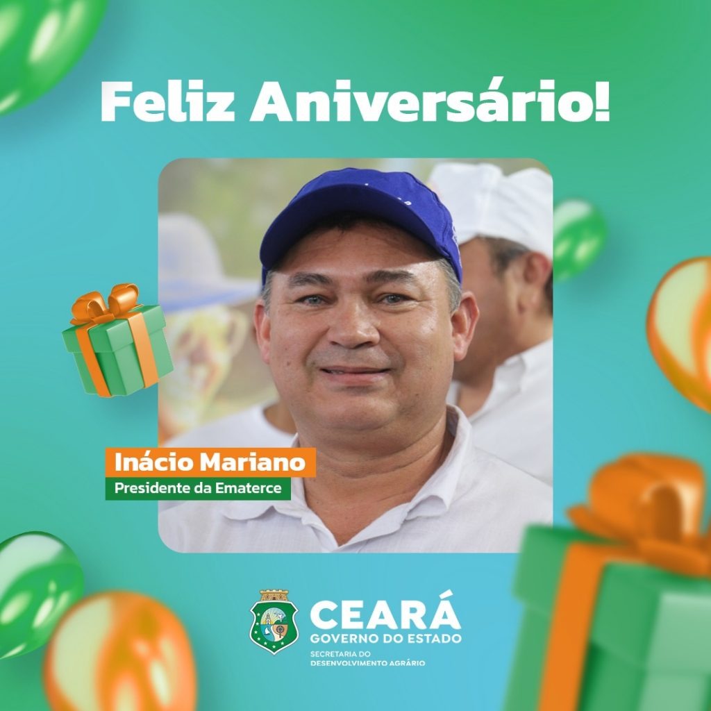 Parabéns, presidente da Empresa de Assistência Técnica e Extensão Rural do Ceará (Ematerce), Inácio Mariano! O Sistema SDA celebra com você este momento especial e deseja um ano de muitas conquistas e realizações. Que cada novo dia seja repleto de alegria, saúde, paz e rodeado pelas pessoas que lhe são queridas. Que o sucesso continue a iluminar sua trajetória!